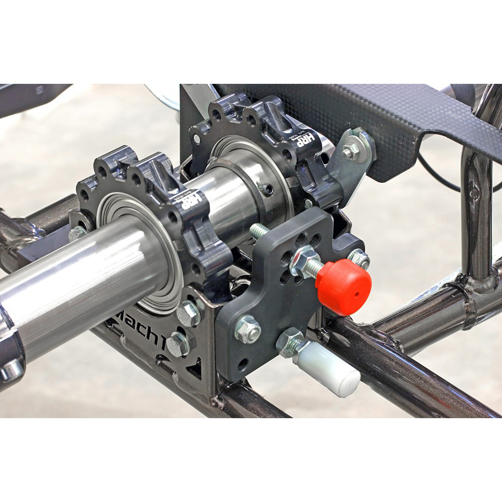 | Dahil aksesuarlar | KG FP7+Duo-Evo bodywork (white, black, red, blue), rear protector CIK/14 (black), Mach1 Chromo decal kit, magnesium rims DWT VLV 132/212, seat HRP/IMAF, HRP EvoX brake system, Mach1 steering wheel 320mm (or 340mm), steering rod vario with excentrics, Sniper Adjuster for setting camber and caster, CNC-machined aluminium pedals, chain guard KG closed, exhaust holders |