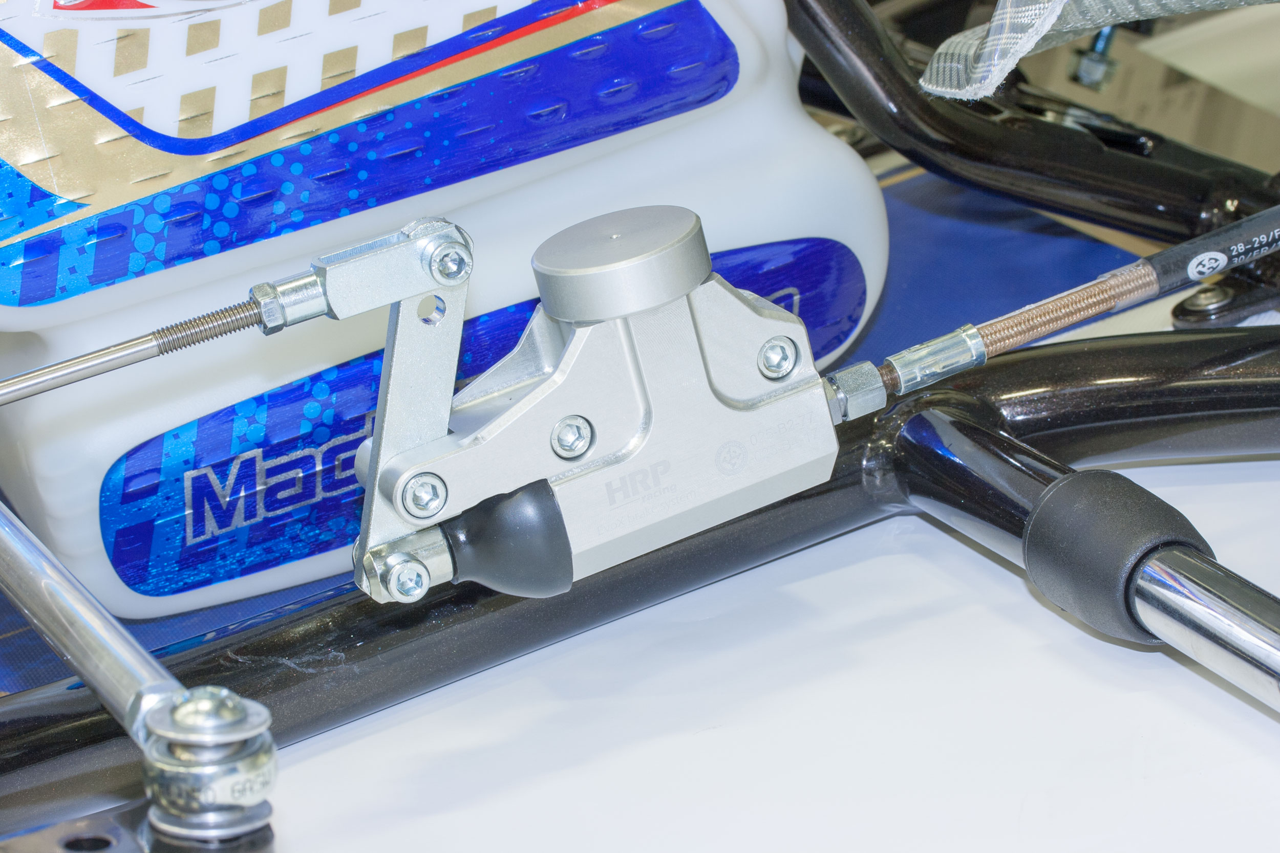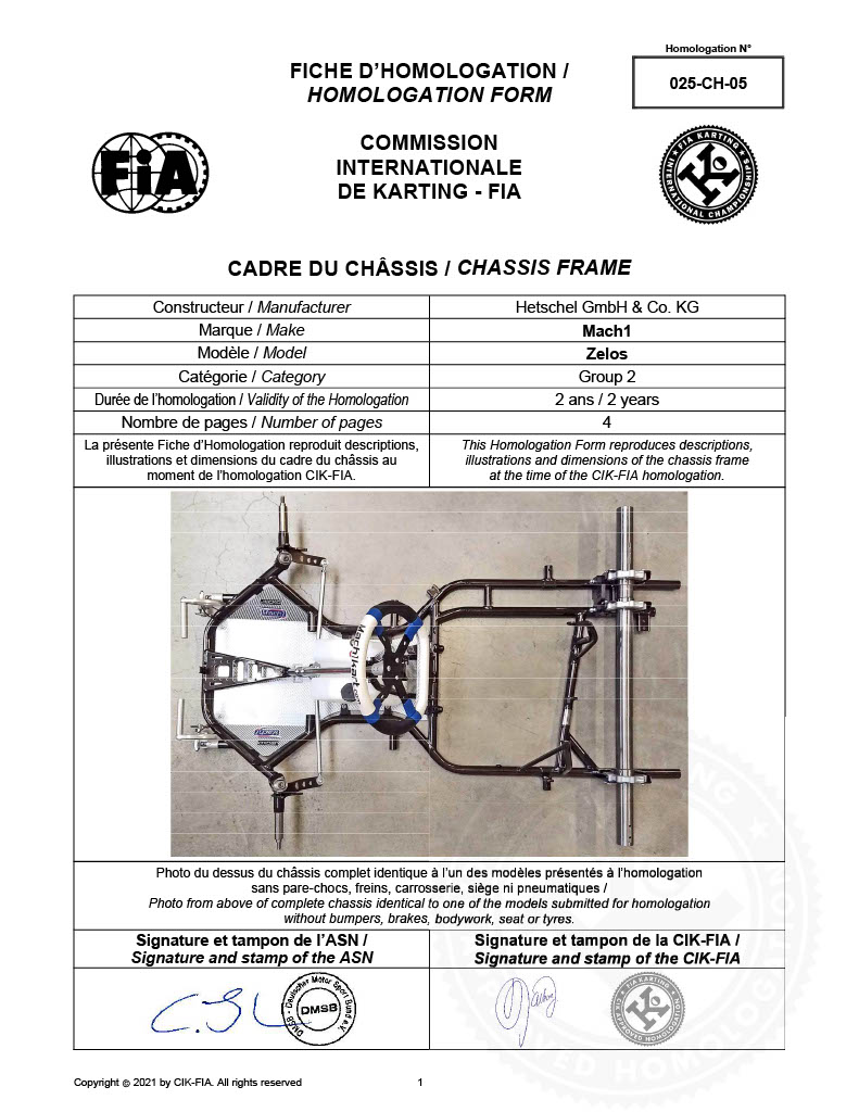 | Dahil aksesuarlar | KG 507 bodywork parts and KG 508 nassau panel (white) Rear protector KG C3 FIA (black) Mach1 livery model 2022 Magnesium rims HRP 132/212 Jecko silver seat HRP EvoX brake system Mach1 flat bottom steering wheel Steering rod “vario” with eccentric, sniper adjuster for caster and camber adjustment CNC-machined aluminum pedals and aluminum footrest Chain guard KG closed |